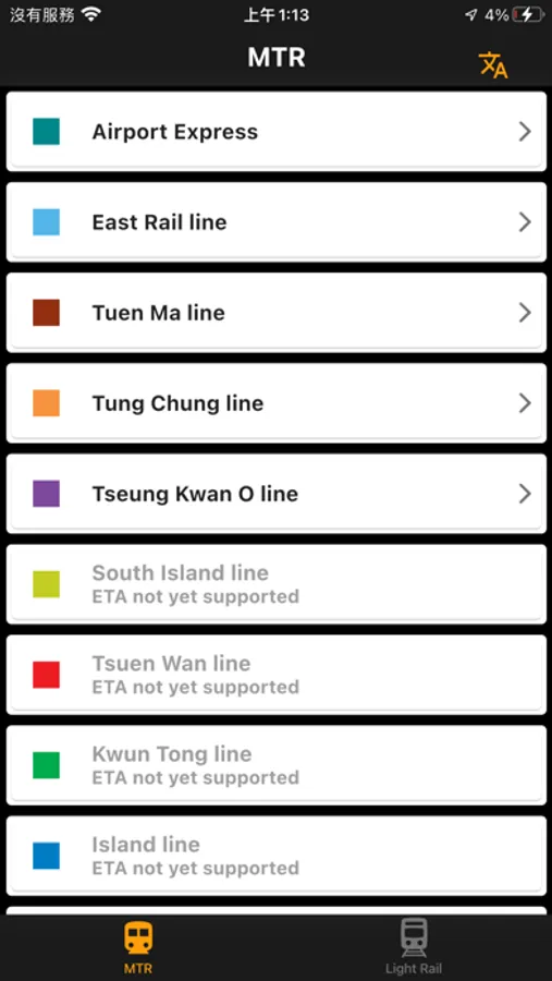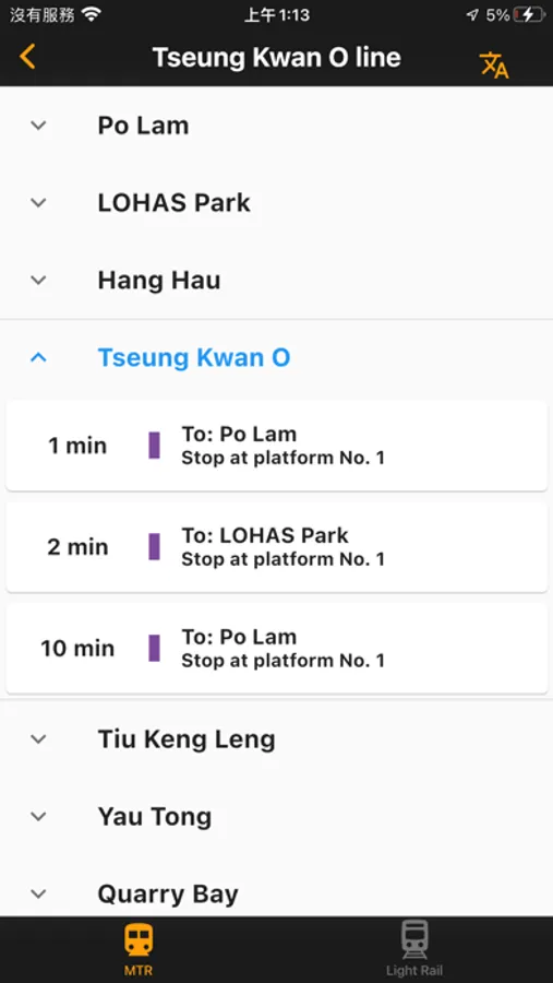 RailTimer providing the MTR and Light Rail Real-time train information.