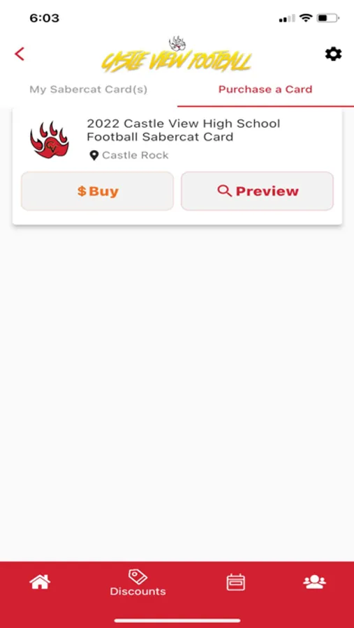 The Castle View Football Sabercat Card is a fundraising application that raises money to support the football program. Our app offers great promotions at local restaurants and other small businesses to help purchasers save money at all their favorite local places. The app is also a great way to find out more about the local Castle View HS Football team, including rosters, updates and other information.