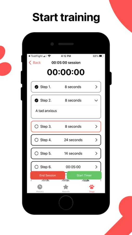 Next, you'll begin the step-by-step training by following easy-to-understand instructions customized to your dog's progress. The app's intelligent algorithm generates individualized timing blocks based on previous training sessions and your dog's baseline.