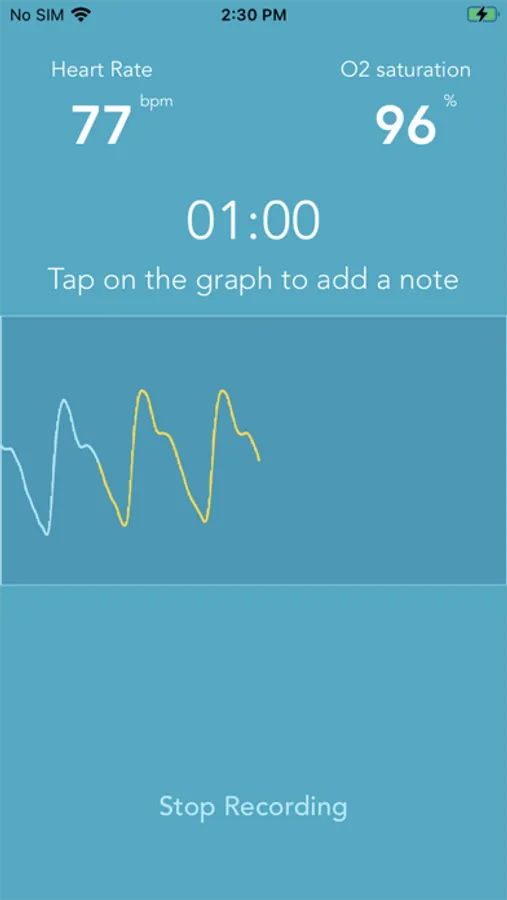 iHeart Record allows you to record heart rate and oxygen saturation over a fixed duration.