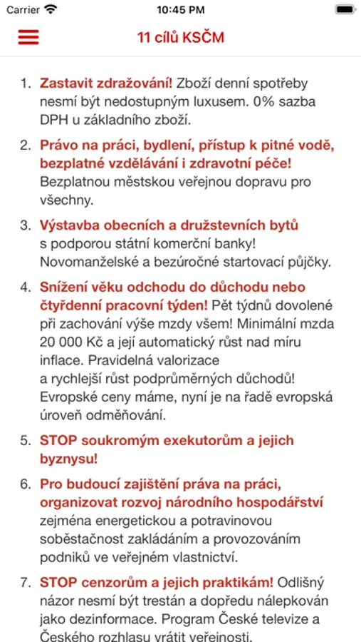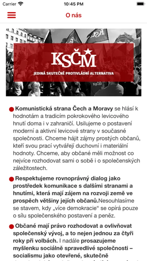 Aplikace jediné systémové alternativy vládě Petra Fialy. Obsahuje pravidelně aktualizovaný přehled protivládních demonstrací a dalších akcí komunistů, vystoupení europoslankyně a předsedkyně KSČM Kateřiny Konečné, politickou satiru, přehled významných výročí, která mainstream tají, a vše o činnosti Komunistické strany Čech a Moravy.