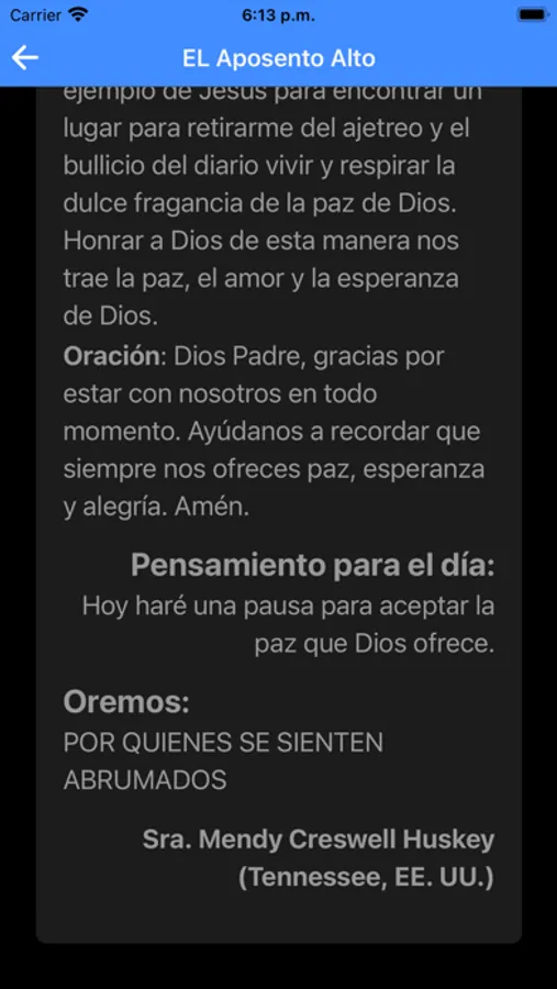 La misión de la Guía de Meditaciones El Aposento Alto es proveer un modelo de cristianismo práctico, para ayudar a las personas a sentirse invitadas y bienvenidas a la presencia de Dios.