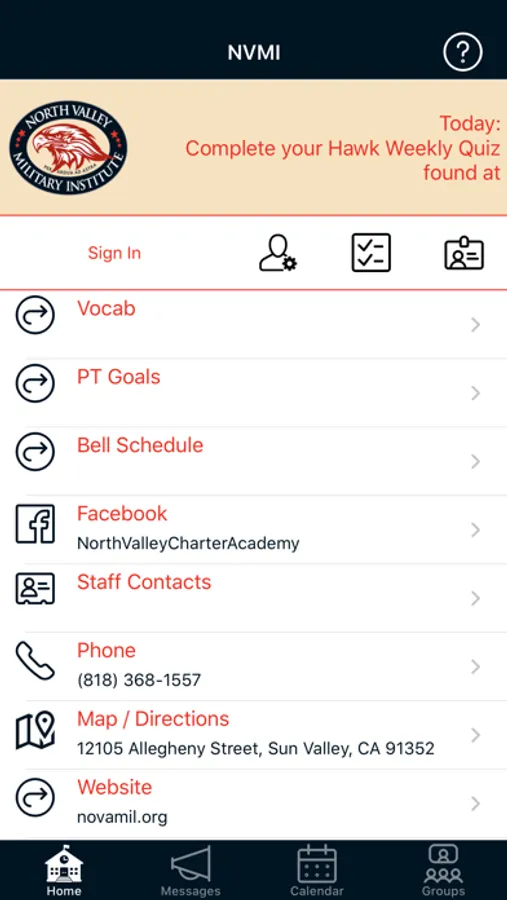 This is the official North Valley Military Institute (Sun Valley, CA) mobile app. NOTE: This app is only useful for students, parents, and staff at this organization.