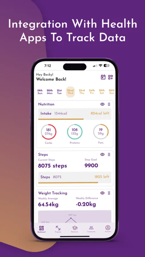 • Track your sleep, nutrition and steps and weight