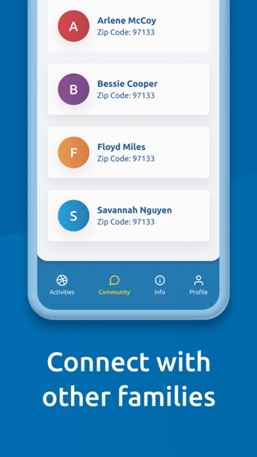 In addition to activities for your child, the community section allows you to connect directly with other families to discuss shared experiences, exchange information and build a network.