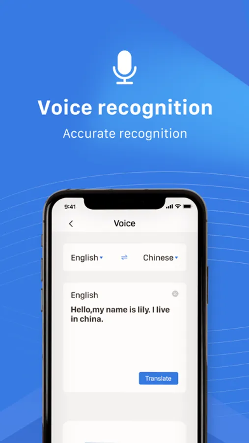 • Text translation: translate between 26+ languages by typing or voice recording.
