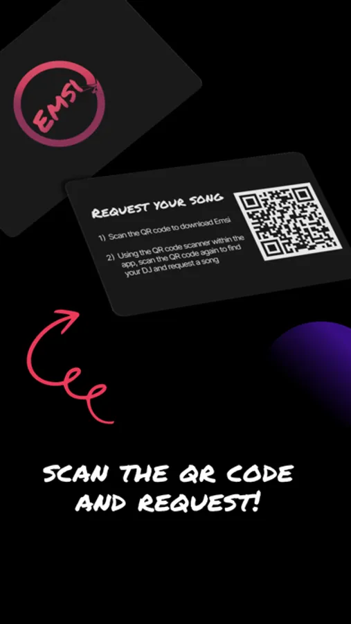 Emsi is contact-free and easy to use. Simply search for your Club or DJ and request your song through their profile. Send in your song request and get a response from the DJ within 15 minutes. Found a QR code? Even better! Use the in-app QR code scanner to get to the DJ’s profile directly. Just scan and request! Follow your favorite clubs and DJs to receive updates and have quick access to their profiles. We connect music lovers with the DJ. Give the people what they want! Party Smarter with Emsi!