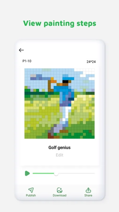 Pixel ladder is the auxiliary software of minbay Pixel Artboard. After connecting through Bluetooth, the Pixel ladder can back up all the paintings in the Pixel Artboard. and view the painting steps. You can also share the paintings with other users, or share them with other APP, such as Facebook, instagram, etc.