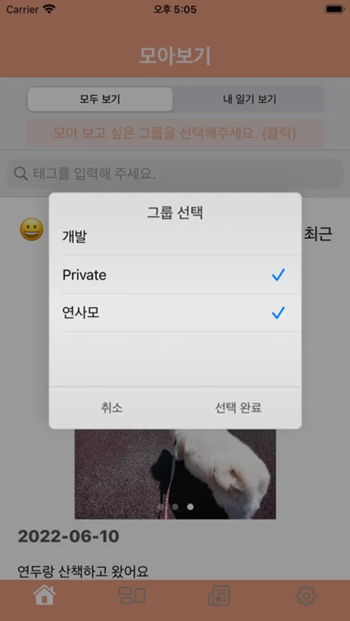 - 친구들을 특정 그룹에 초대하여 서로의 추억을 일기형태로 공유!