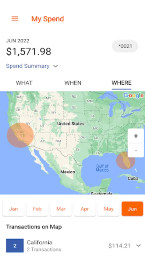 Get important data about your card purchases. Sort spending insights by merchant category, location, and monthly trends.