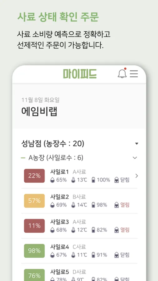 Check the amount and status of feed left in the feed bin in real time on the My Fee