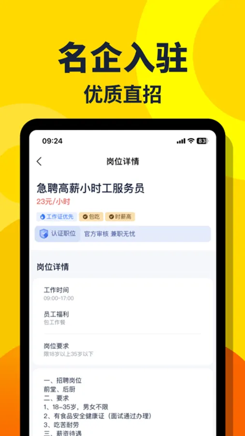 杜绝虚假!任何发布兼职的商家,必须上传身份认证和营业执照照片,经平台审核后方可发布兼职。