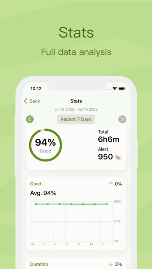 On On the app, you can view the current day/month/year/the last 7 days/the last 30 days focus time and bad posture statistics, this function uses iCloud Private Database only you can view your own data, to maximize the protection of your privacy.