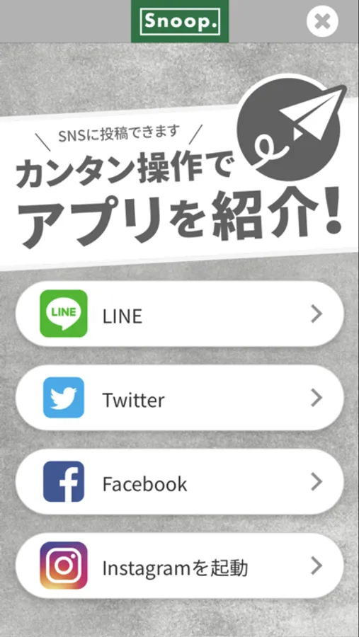 -このアプリをダウンロードすると、スヌープのニュースがメッセージとして受け取れます。