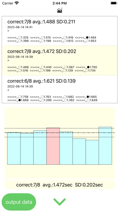 The iOS app "C2 Flanker Task" records the response time of a flanker task (task conflict) in milliseconds.