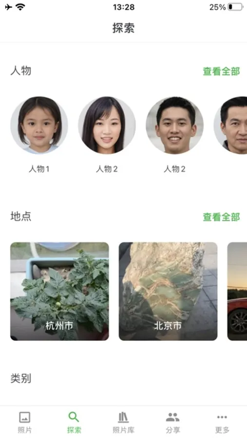 支持自动整理、分类您的照片,比如:时间、地点、人物、照片类型。