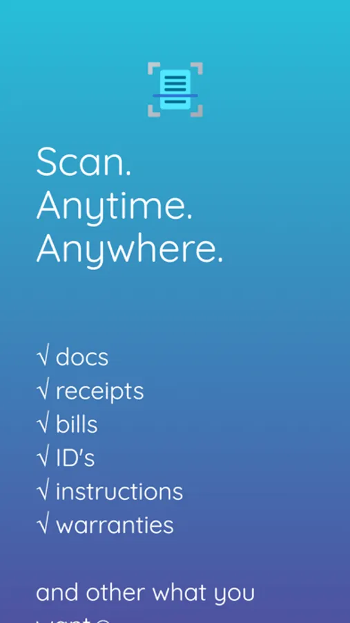 SnapScan turns your phone into a mobile scanner for documents, ID's, invoices, warranties, bills, receipts, manuals, business cards and more what you need to scan.