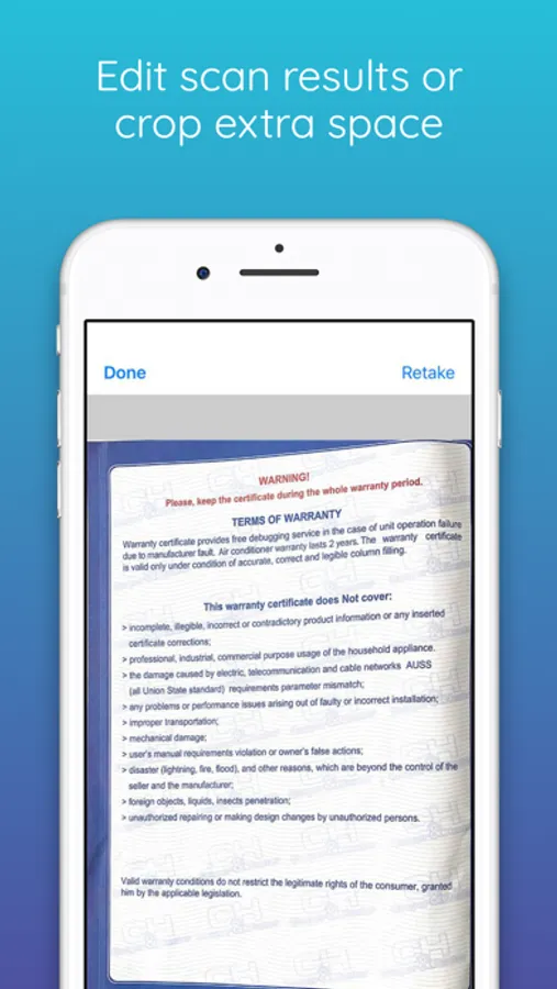 - you can crop, turn or use any filter for better quality of your results of scans;