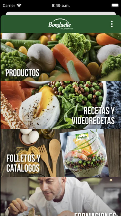 Desde hace más de 40 años, Bonduelle Food Service trabaja codo con codo con todas las áreas de la hostelería y restauración. Como parte de nuestras soluciones innovadoras Bonduelle Food Service ha creado una aplicación móvil para que tengas acceso a nuestro catálogo de productos y recetas de manera inmediata, además de un contacto directo con nuestros asesores culinarios.