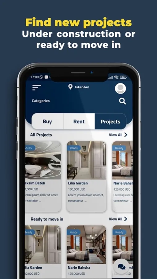 With a list of fascinating real estate projects, you can find a unique apartment in Turkey to buy or rent. You can also check real estate projects under construction or ready-to-move projects from our trusted partners.