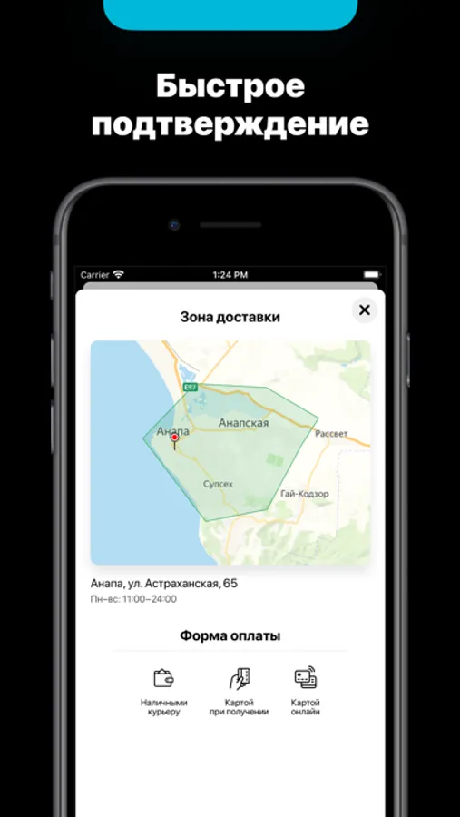 — Быстрый заказ с мгновенным подтверждением через приложение.