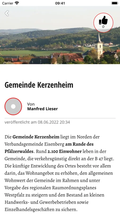Die Gemeinde Kerzenheim liegt im Norden der Verbandsgemeinde Eisenberg am Rande des Pfälzerwaldes. Rund 2.100 Einwohner leben in der Gemeinde, die verkehrsgünstig direkt an der B47 zwischen der A6 und der A63 liegt. Die künftige Entwicklung des Ortes besteht vor allem darin, das Wohnangebot zu erhöhen, den allgemeinen Wohnwert zu steigern und den Bestand an kleinen Handwerks- und Gewerbebetrieben sowie Einzelhandelsgeschäften zu sichern.