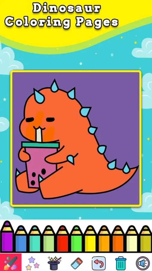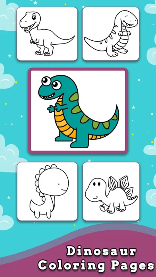 - Dinosaur colouring pages has possibility of storing images which your child drew straight to the phone's gallery