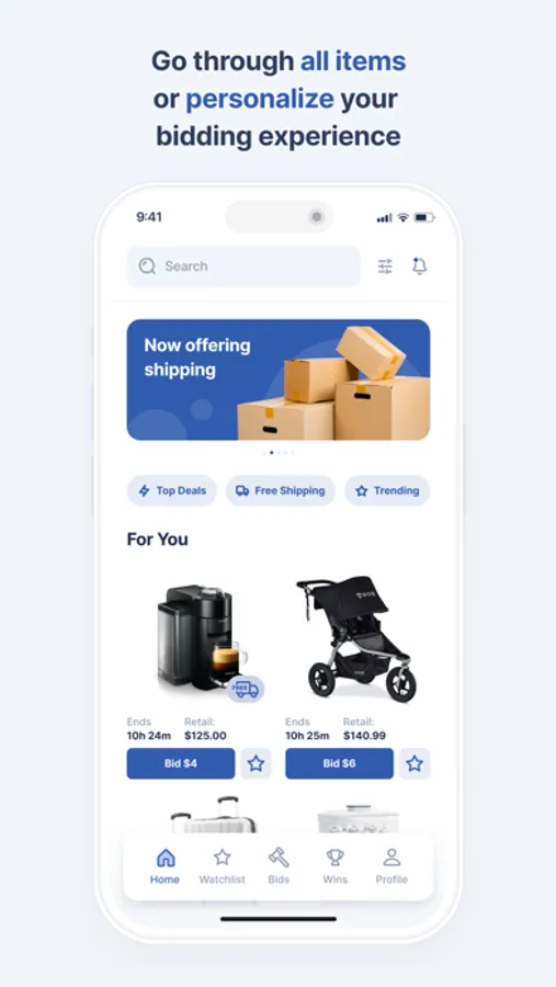 Online Liquidation Auction sells tens of thousands of items under retail cost each week. We give the common online shopping experience a live auction feel. Customers can freely place bids on items that our team inventories and photographs. We preview all items in depth for our customers, adding to the accessibility and affordability of our auction. Our app is designed to provide clarity and convenience, making for the best bidding experience and the best deals!