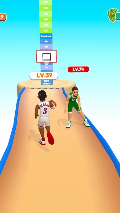 Level up the basketball player to reach the high as legends. In order to level up your basketball career, avoid higher-level enemies and remember to beat the lower-level enemies!