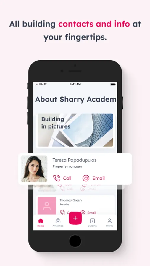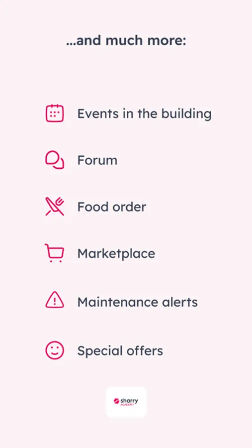 This application is intended not only for employees that work in Sharry Academy but for their visitors as well. Important information about the building is organized on the dashboard, which dynamically changes throughout the day. The app offers more functionality including forums, ability to request maintenance, events, information about companies in the building and about the building itself where you can find important contact, guides and documents.