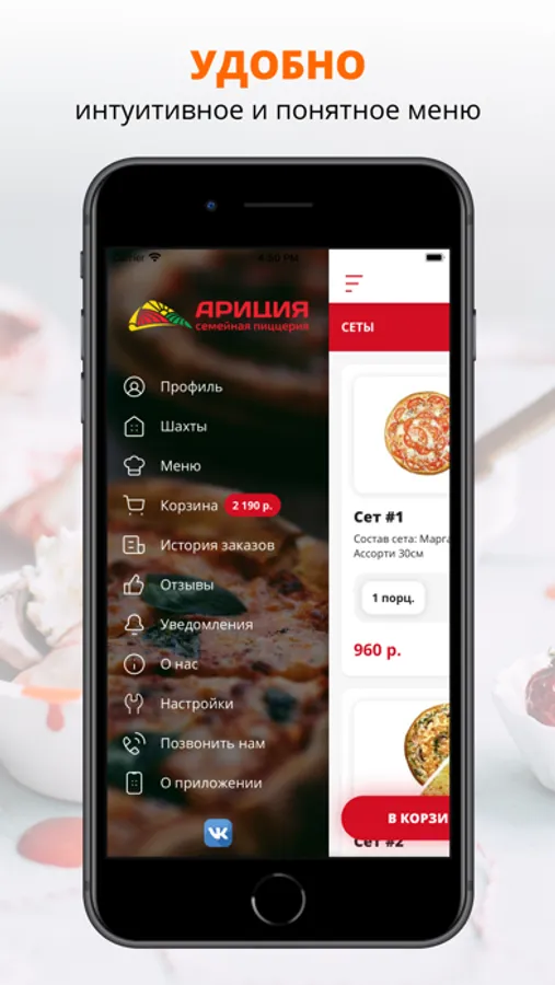Воспользуйтесь удобным приложением для заказа еды «АРИЦИЯ ПИЦЦА».