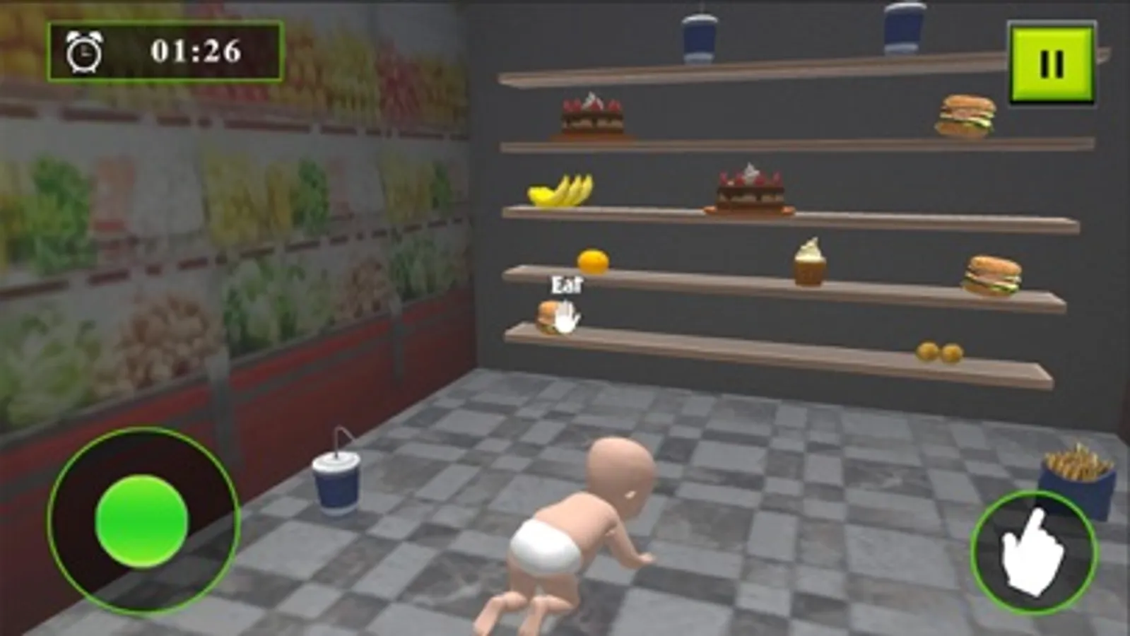 Have you ever experienced Fat Hungry Baby games with lots of playing activities? Are you excited to meet a Baby Simulator who eats a lot of food and grows rapidly in a virtual baby game. Entertain yourself with a lot of baby care naughty games in Baby Simulator Offline Games. There are a lot of food items spread everywhere in eating games. It can eat everything to satisfy hunger. The baby moves from one place to another in search of food. The only mission is to find food for growing and become a monster baby.