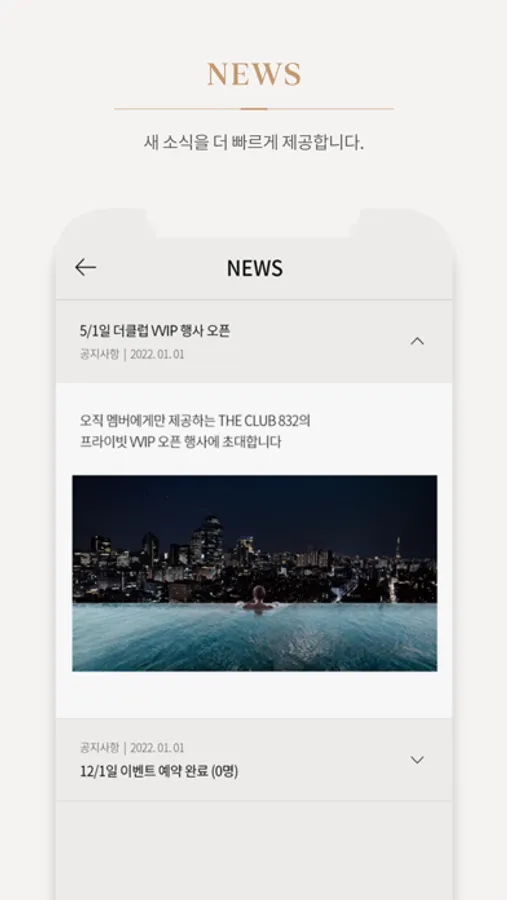 영국 로열 라이프로 선보이는 프라이빗 멤버십 클럽, THE CLUB 832의 멤버 전용 앱입니다.