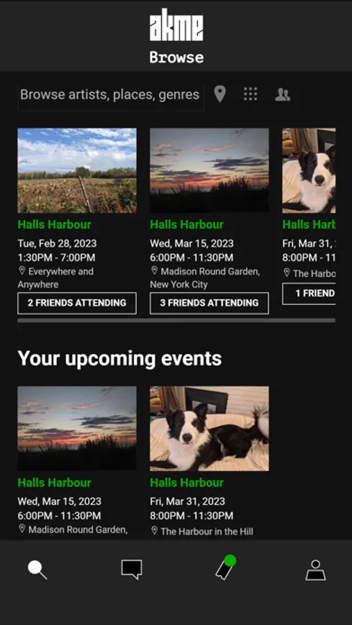 Get closer to events of every kind in a split second; connect, listen, watch and engage in Akme. Akme welcomes users to hear, see, feel and relive any event; while intentionally creating and fostering a community of individuals with shared interests and an end goal of revolutionizing, enhancing and immortalizing their event experience. Akme seeks to enhance and improve users' event experiences globally and can also be seen as a way for users to ‘teleport’ to live events Akme users are also able to connect with others who have a mutual excitement and passion about an interest. Ultimately, Akme generates an environment in which attendees can connect, communicate, and bond with other users; with the goal of forming a community of like-minded individuals. Users of Akme can post and comment on events, message other users and can be the first to watch new videos, releases and posts from their favourite artists, bands, sports teams, comedians, speakers and many more. Akme also allows users to interact with events in real-time. Akme takes its users ‘there’; Akme is a social networking app intended for interaction and participation at any event-which users can access from anywhere in the world. Akme provides space for users to be fully immersed in the live or recorded event experience. Akme users are able to actively enjoy and participate, regardless of whether they are physically attending an event, or experiencing it from the comfort of their homes. Through using Akme, users can become immediately immersed in events of every kind to connect, listen, watch and engage.