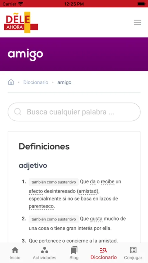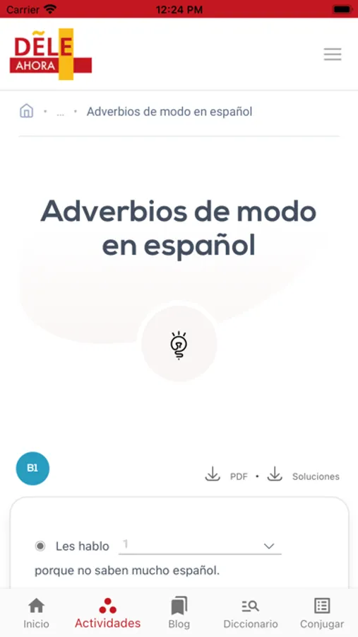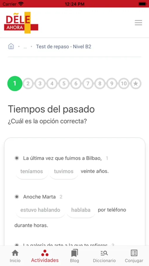 App oficial de DELE Ahora: Recursos, artículos, ejercicios de vocabulario y gramática, exámenes, actividades de comprensión de lectura y más, para aprender español de la manera más rápida y eficaz - para todos los niveles, desde el A1 hasta el C2. Ahora, ¡también desde tu móvil!