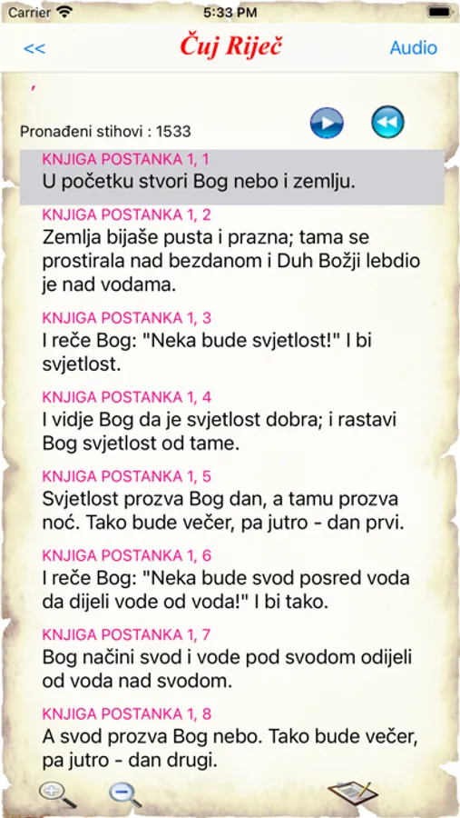 Moći ćete čuti ili čitati Božju riječ, pretraživati Bibliju na razne načine, kao što su riječi i izrazi sadržani u Svetom pismu.