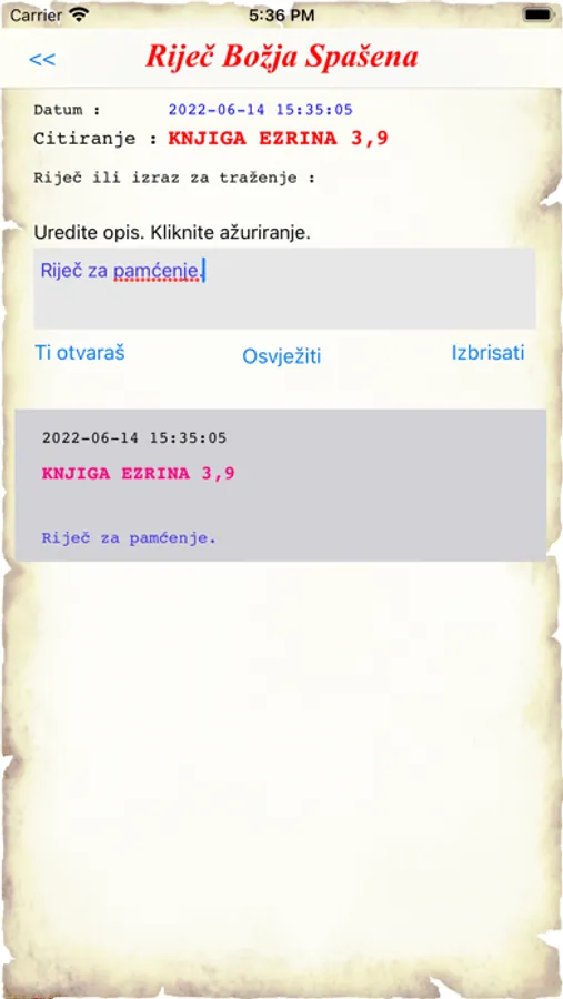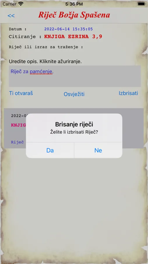 Postoji mogućnost otvaranja Riječi nasumce, kao što se obično radi u grupama Obnove.