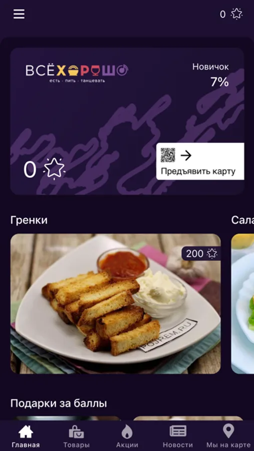 С приложением «Всё Хорошо» вы сможете следить за актуальными новостями сети ресторанов, обновлениями, получать уникальные предложения.