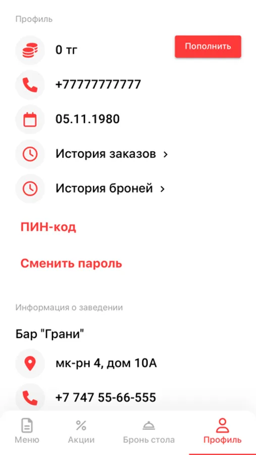 Всегда актуальное меню, акции и список ближайших мероприятий.