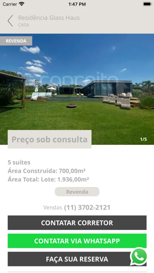 O aplicativo Conceito JHSF tem como objetivo apresentar os principais empreendimentos residenciais e comerciais da JHSF. Assim você poderá conhecer cada detalhe de uma maneira rápida e fácil.
