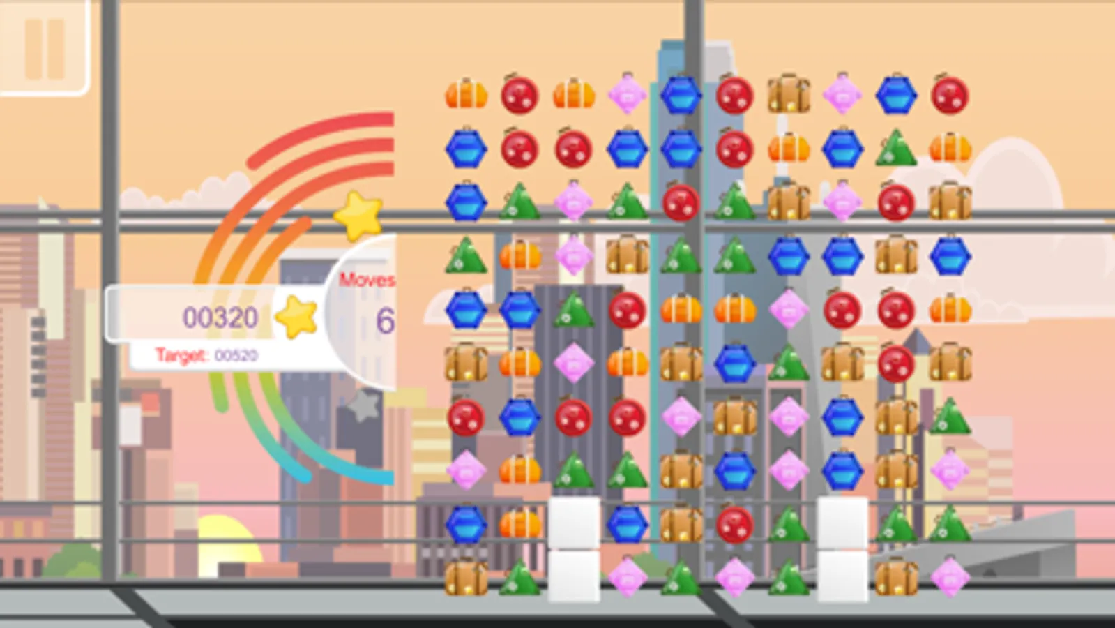 The third game is called Pack Your Bags! The goa lis to match the different bags in a line of 3 or more to reach the objective score.