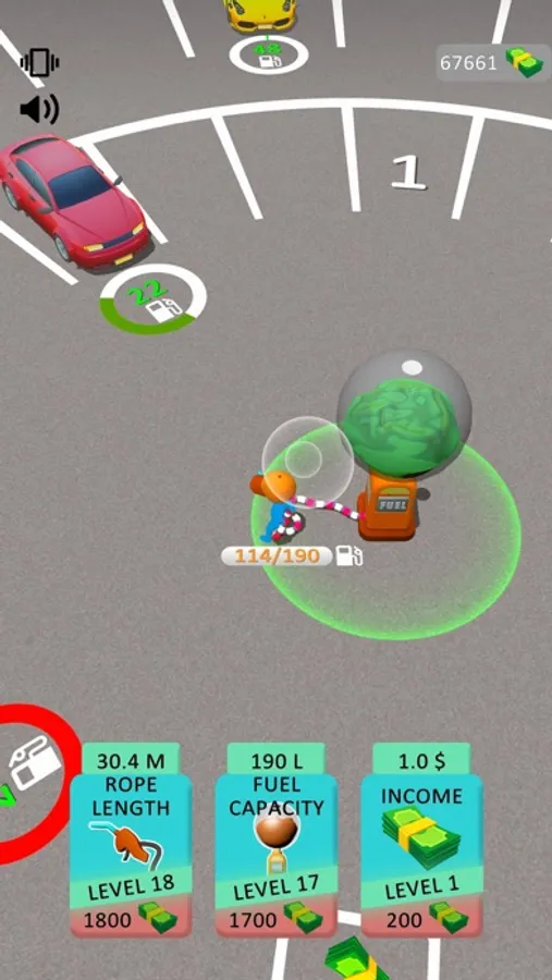Stretch your rope, grow your tank and fill up the cars. Expand your station with new cars and earn the most money.