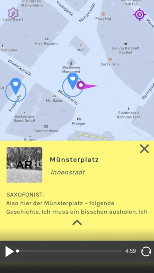 But now let's go and have fun discovering Bonn. And if you feel like telling us yours after all these stories, you'll find opportunities and hints here in the app.