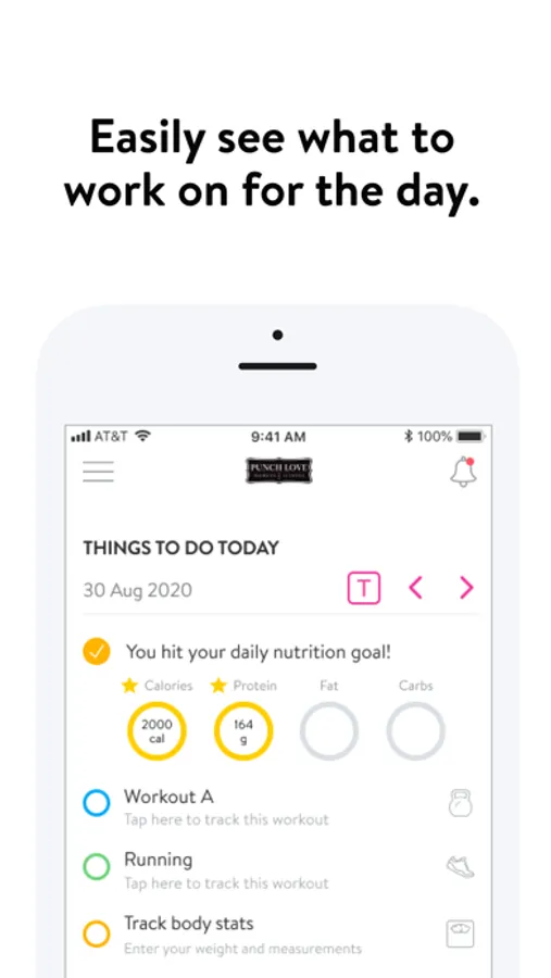 Punch Love PT & Weightloss Coaching App-  start tracking your workouts and meals, measuring results, and achieving your fitness goals, all with the help of your Punch Love personal trainer & Nutrition Coach.