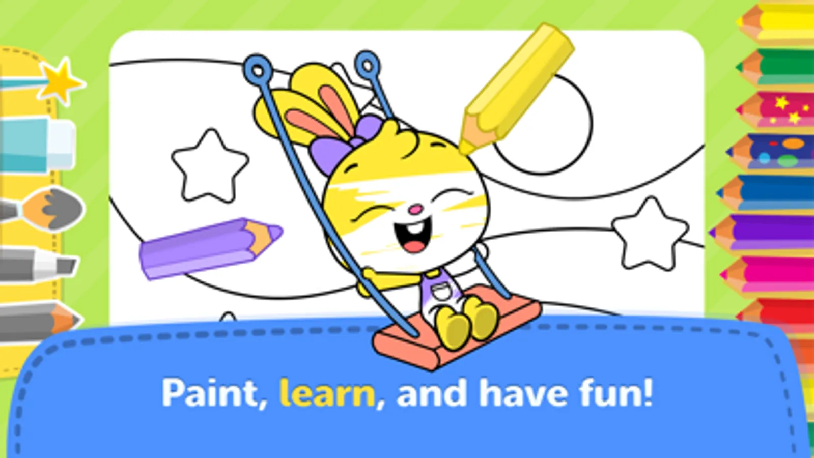 Children can let their imagination loose by using colors, textures, and having a lot of fun! After selecting the theme and the drawing, children will choose between 4 different types of tools available (magic paintbrush, color pencil, classic pencil, and marker), which allow them to create paintings with different strokes and textures, in addition to over 40 colors to let the creativity flow and lead the fun.