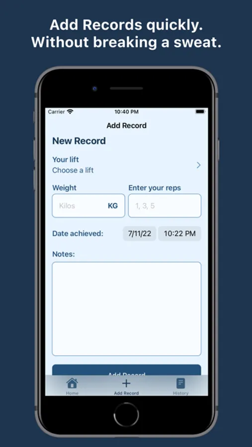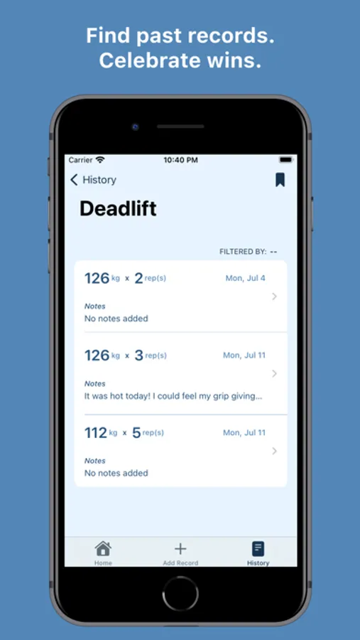 Record your personal records in a few taps. Easily find past records without fumbling through old notebooks.