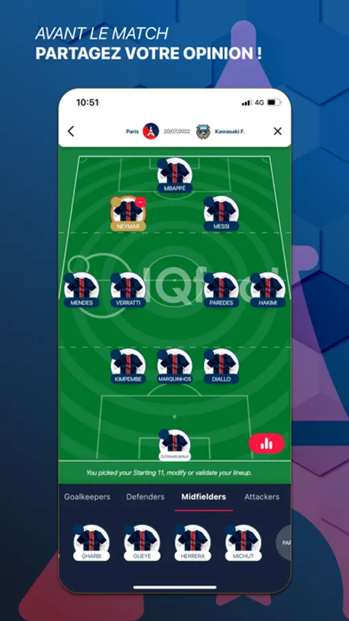 L' application IQfoot Paris vous permet d'exprimer vos opinions sur les sujets qui vous passionnent au quotidien tout au long de la saison, avant, pendant et après les matchs.