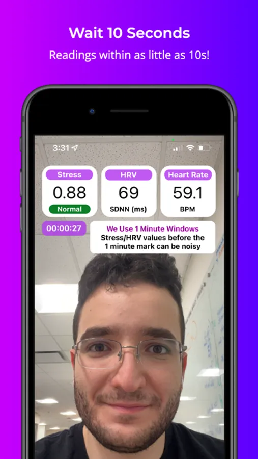 Beam AI Lite enables you to measure and monitor stress (according to the Baevsky stress index), HRV (SDNN) and pulse rate (BPM) continuously through the selfie camera. It uses a light-weight version of the advanced rPPG technology developed by Beam AI and currently runs at 30fps. To learn more about the underlying technology and our work, please visit www.beamhealth.ai.