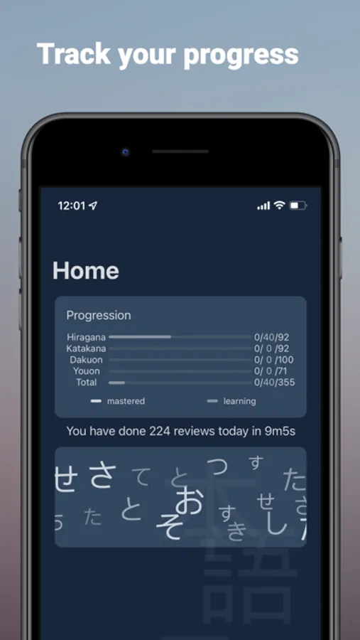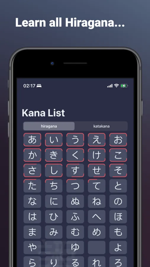 Kana no Tatsujin lets you practice reading and writing of Japanese Kana in an efficient way.