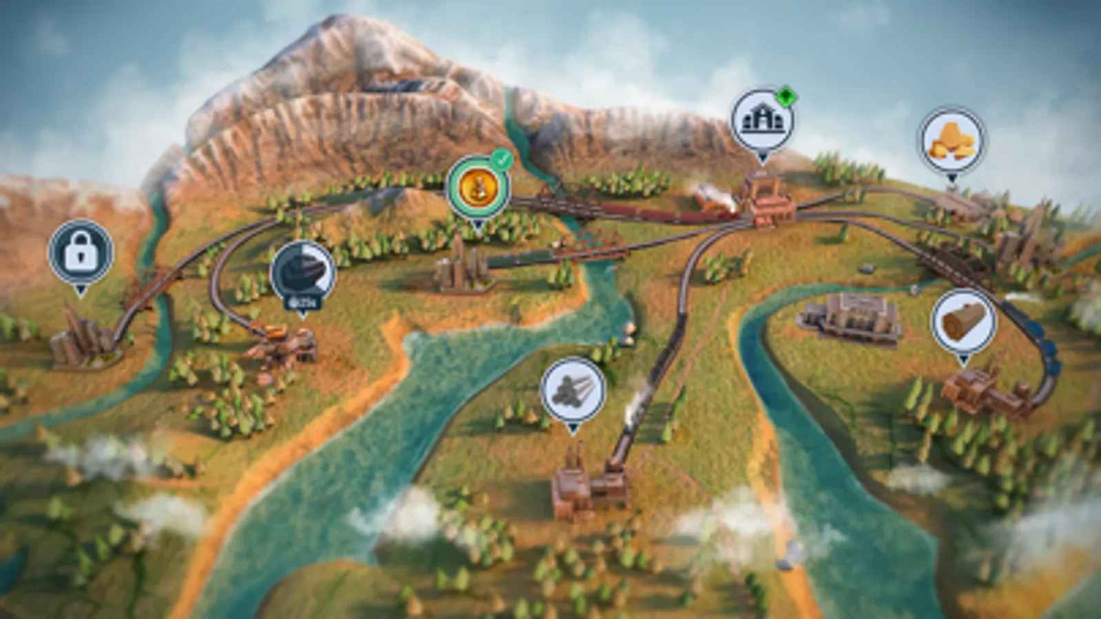 - Level up your train station headquarters, mines, and factories to maximize the profit